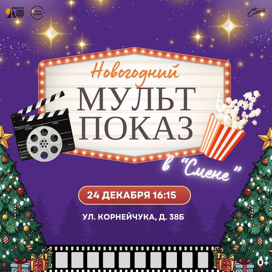 Дом культуры «Смена» приглашает на Новогодний мультпоказ, который состоится 24 декабря в 16:15!