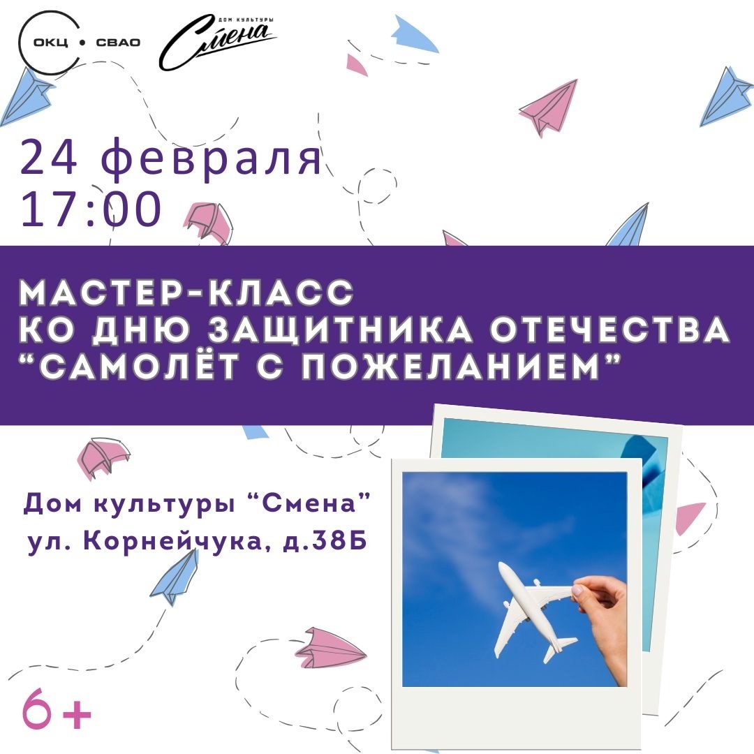 24 февраля в 17:00 в Доме культуры «Смена» приглашаем детей на увлекательный мастер-класс, посвящённый Дню защитника Отечества!