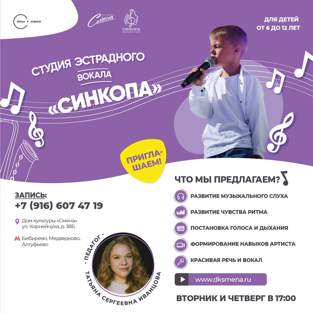 Мы приглашаем детей и взрослых с любым уровнем подготовки для развития вокальных навыков. У нас вы сможете не только научиться петь, но и участвовать в конкурсах, концертах и фестивалях!