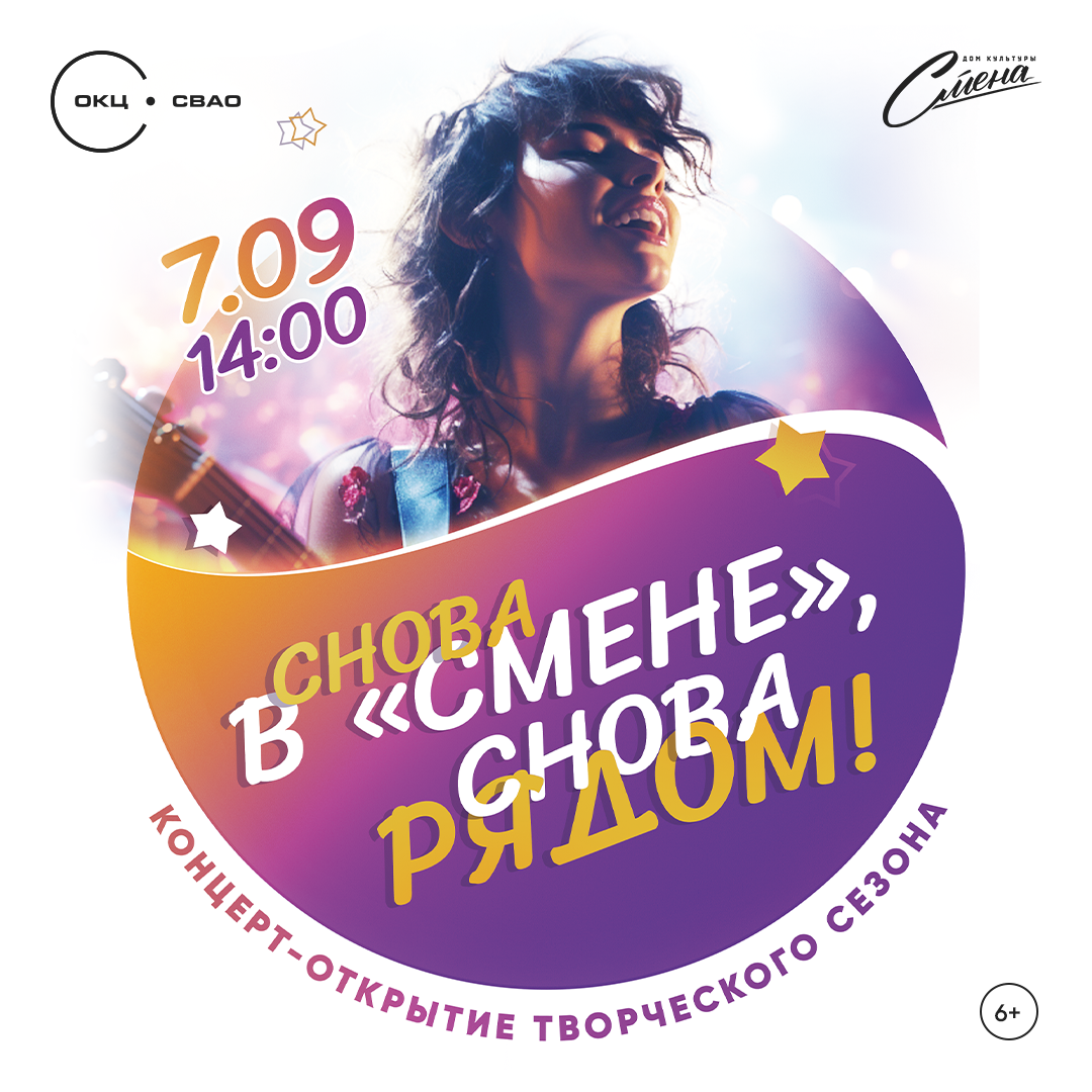 ✨ Это не просто концерт — это встреча друзей, единомышленников и всех, кто разделяет любовь к творчеству! Приходите, чтобы снова почувствовать атмосферу «Смены» и вместе начать этот замечательный сезон.